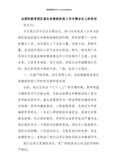【七哥公文】2025年:【七哥公文】在国际教育园区基孔肯雅热防控工作专题会议上的讲话+更多免费公文+VX:QiGeGongWen2024+更多免费公文+VX:QiGeGongWen2024