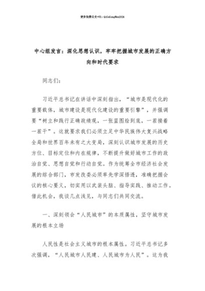 【七哥公文】2025年:【七哥公文】中心组发言:深化思想认识,牢牢把握城市发展的正确方向和时代要求(中央城市工作会议精神)+更多免费公文+VX:QiGeGongWen2024+更多免费公文+VX:QiGeGongWen2024