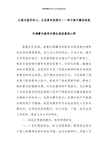 【七哥公文】2025年:【七哥公文】以案为鉴守初心,正风肃纪促税兴——学习集中整治违规吃喝警示教育专题会典型案例心得+更多免费公文+VX:QiGeGongWen2024+更多免费公文+VX:QiGeGongWen2024