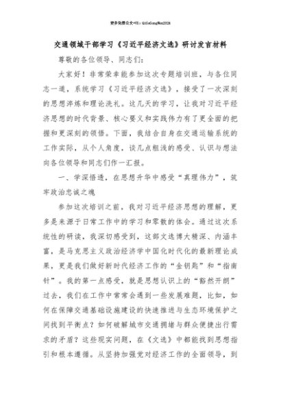 【七哥公文】2025年:【七哥公文】交通领域干部学习《习近平经济文选》研讨发言材料+更多免费公文+VX:QiGeGongWen2024+更多免费公文+VX:QiGeGongWen2024
