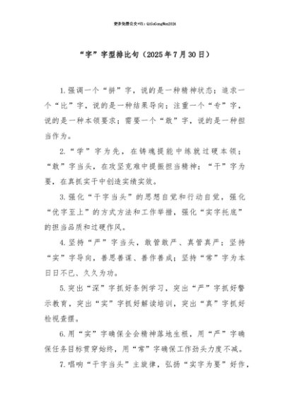 【七哥公文】2025年:【七哥公文】“字”字型排比句(2025年7月30日)+更多免费公文+VX:QiGeGongWen2024+更多免费公文+VX:QiGeGongWen2024