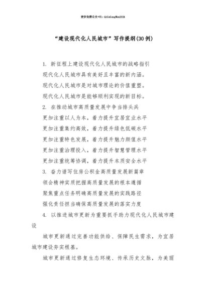 【七哥公文】2025年:【七哥公文】(30例)“建设现代化人民城市”写作提纲+更多免费公文+VX:QiGeGongWen2024+更多免费公文+VX:QiGeGongWen2024