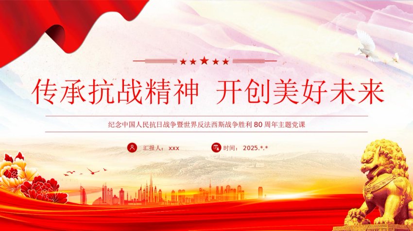 【七哥公文】2025年:【七哥公文】PPT:传承抗战精神开创美好未来——纪念中国人民抗日战争暨世界反法西斯战争胜利80周年主题党课ppt+更多免费公文+VX:QiGeGongWen2024+更多免费公文+VX:QiGeGongWen2024