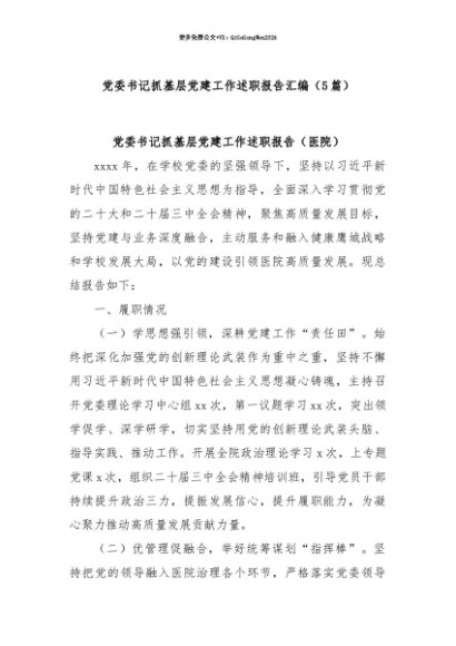 【七哥公文】2025年:【七哥公文】(5篇)党委书记抓基层党建工作述职报告汇编+更多免费公文+VX:QiGeGongWen2024+更多免费公文+VX:QiGeGongWen2024