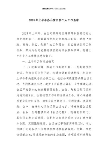 【七哥公文】2025年:【七哥公文】2025年上半年办公室主任个人工作总结+更多免费公文+VX:QiGeGongWen2024+更多免费公文+VX:QiGeGongWen2024