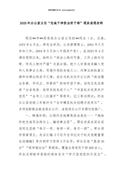 【七哥公文】2025年:【七哥公文】2025年办公室主任“忠诚干净担当好干部”现实表现材料+更多免费公文+VX:QiGeGongWen2024+更多免费公文+VX:QiGeGongWen2024