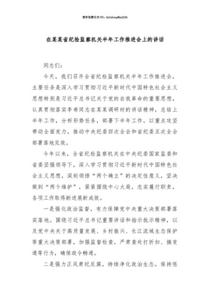 【七哥公文】2025年:【七哥公文】在某某省纪检监察机关半年工作推进会上的讲话+更多免费公文+VX:QiGeGongWen2024+更多免费公文+VX:QiGeGongWen2024