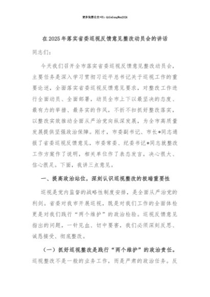 【七哥公文】2025年:【七哥公文】在2025年落实省委巡视反馈意见整改动员会的讲话+更多免费公文+VX:QiGeGongWen2024+更多免费公文+VX:QiGeGongWen2024