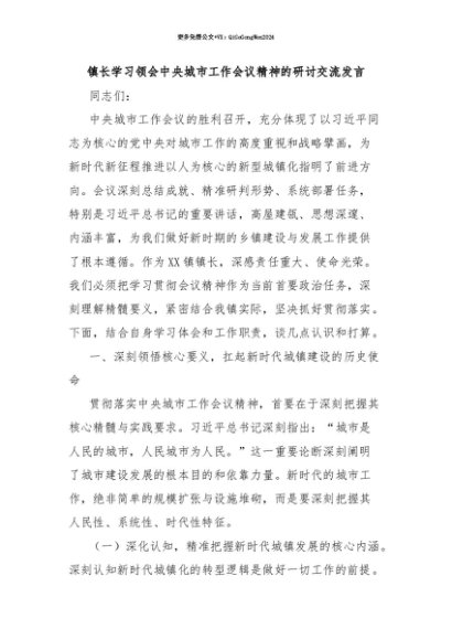 【七哥公文】2025年:【七哥公文】镇长学习领会中央城市工作会议精神的研讨交流发言+更多免费公文+VX:QiGeGongWen2024+更多免费公文+VX:QiGeGongWen2024