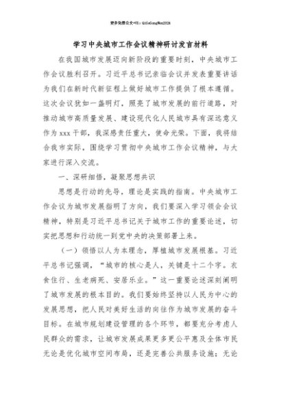 【七哥公文】2025年:【七哥公文】学习中央城市工作会议精神研讨发言材料+更多免费公文+VX:QiGeGongWen2024+更多免费公文+VX:QiGeGongWen2024