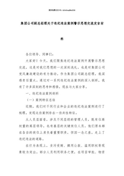 【七哥公文】2025年:【七哥公文】集团公司副总经理关于违纪违法案例警示思想交流发言材料+更多免费公文+VX:QiGeGongWen2024+更多免费公文+VX:QiGeGongWen2024