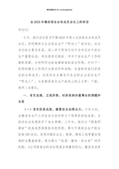 【七哥公文】2025年:【七哥公文】在2025年镇安委会全体成员会议上的讲话+更多免费公文+VX:QiGeGongWen2024+更多免费公文+VX:QiGeGongWen2024