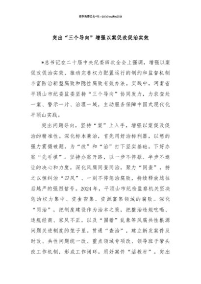 【七哥公文】2025年:【七哥公文】突出“三个导向”增强以案促改促治实效+更多免费公文+VX:QiGeGongWen2024+更多免费公文+VX:QiGeGongWen2024