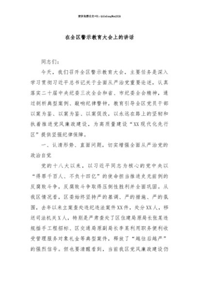【七哥公文】2025年:【七哥公文】在全区警示教育大会上的讲话+更多免费公文+VX:QiGeGongWen2024+更多免费公文+VX:QiGeGongWen2024