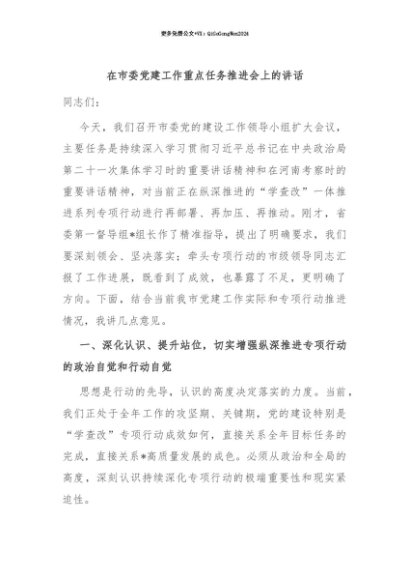 【七哥公文】2025年:【七哥公文】在市委党建工作重点任务推进会上的讲话+更多免费公文+VX:QiGeGongWen2024+更多免费公文+VX:QiGeGongWen2024