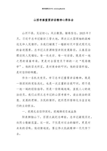 【七哥公文】2025年:【七哥公文】山西考察重要讲话精神心得体会+更多免费公文+VX:QiGeGongWen2024+更多免费公文+VX:QiGeGongWen2024