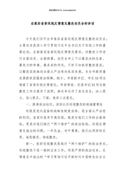 【七哥公文】2025年:【七哥公文】在落实省委巡视反馈意见整改动员会的讲话+更多免费公文+VX:QiGeGongWen2024+更多免费公文+VX:QiGeGongWen2024