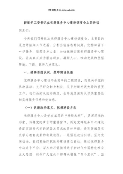 【七哥公文】2025年:【七哥公文】街道党工委书记在党群服务中心建设调度会上的讲话+更多免费公文+VX:QiGeGongWen2024+更多免费公文+VX:QiGeGongWen2024