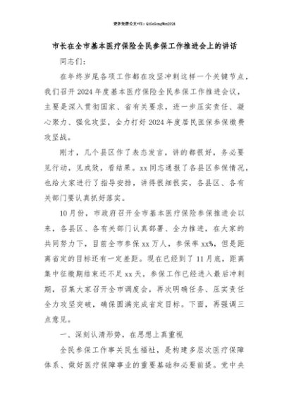 【七哥公文】2025年:【七哥公文】市长在全市基本医疗保险全民参保工作推进会上的讲话+更多免费公文+VX:QiGeGongWen2024+更多免费公文+VX:QiGeGongWen2024