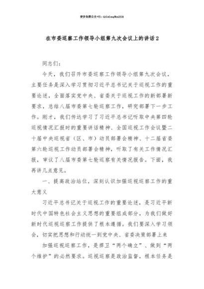 【七哥公文】2025年:【七哥公文】在市委巡察工作领导小组第九次会议上的讲话2+更多免费公文+VX:QiGeGongWen2024+更多免费公文+VX:QiGeGongWen2024