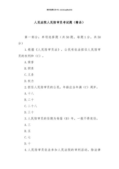 【七哥公文】2025年:【七哥公文】人民法院人民陪审员考试题(精品)+更多免费公文+VX:QiGeGongWen2024+更多免费公文+VX:QiGeGongWen2024