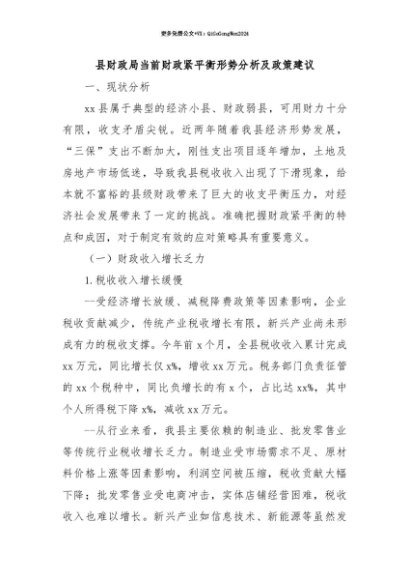 【七哥公文】2025年:【七哥公文】县财政局当前财政紧平衡形势分析及政策建议+更多免费公文+VX:QiGeGongWen2024+更多免费公文+VX:QiGeGongWen2024