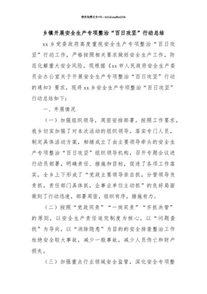【七哥公文】2025年:【七哥公文】乡镇开展安全生产专项整治“百日攻坚”行动总结+更多免费公文+VX:QiGeGongWen2024+更多免费公文+VX:QiGeGongWen2024