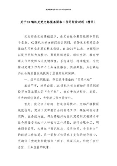【七哥公文】2025年:【七哥公文】关于XX镇机关党支部强基固本工作的经验材料(精品)+更多免费公文+VX:QiGeGongWen2024+更多免费公文+VX:QiGeGongWen2024