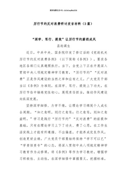 【七哥公文】2025年:【七哥公文】(3篇)厉行节约反对浪费研讨发言材料+更多免费公文+VX:QiGeGongWen2024+更多免费公文+VX:QiGeGongWen2024