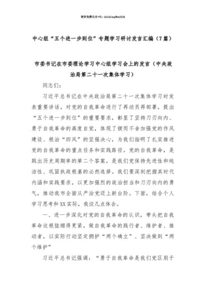 【七哥公文】2025年:【七哥公文】(7篇)中心组“五个进一步到位”专题学习研讨发言汇编+更多免费公文+VX:QiGeGongWen2024+更多免费公文+VX:QiGeGongWen2024
