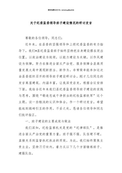 【七哥公文】2025年:【七哥公文】关于纪委监委领导班子建设情况的研讨发言+更多免费公文+VX:QiGeGongWen2024+更多免费公文+VX:QiGeGongWen2024