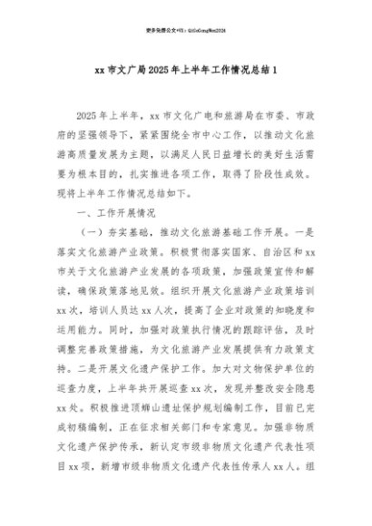【七哥公文】2025年:【七哥公文】xx市文广局2025年上半年工作情况总结1+更多免费公文+VX:QiGeGongWen2024+更多免费公文+VX:QiGeGongWen2024