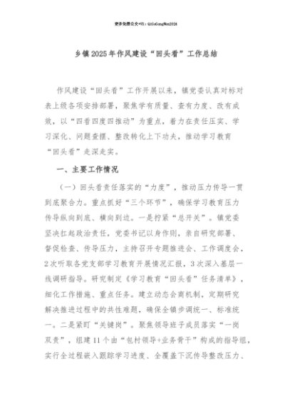 【七哥公文】2025年:【七哥公文】乡镇2025年作风建设“回头看”工作总结+更多免费公文+VX:QiGeGongWen2024+更多免费公文+VX:QiGeGongWen2024