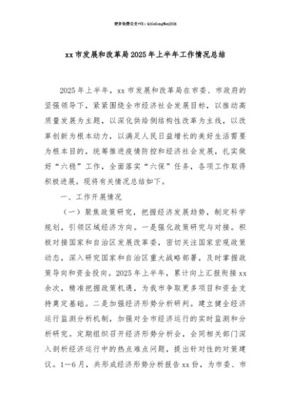 【七哥公文】2025年:【七哥公文】xx市发展和改革局2025年上半年工作情况总结+更多免费公文+VX:QiGeGongWen2024+更多免费公文+VX:QiGeGongWen2024