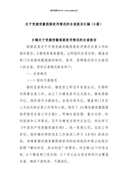 【七哥公文】2025年:【七哥公文】(5篇)关于党旗党徽图案使用情况的自查报告汇编+更多免费公文+VX:QiGeGongWen2024+更多免费公文+VX:QiGeGongWen2024