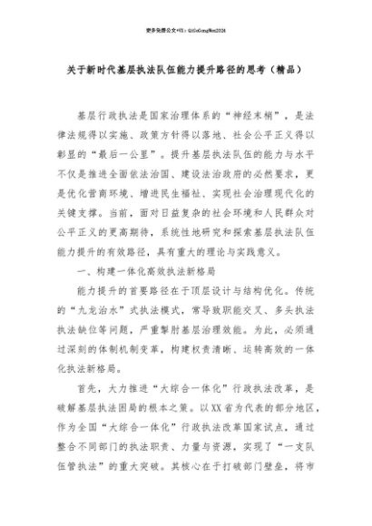 【七哥公文】2025年:【七哥公文】关于新时代基层执法队伍能力提升路径的思考(精品)+更多免费公文+VX:QiGeGongWen2024+更多免费公文+VX:QiGeGongWen2024