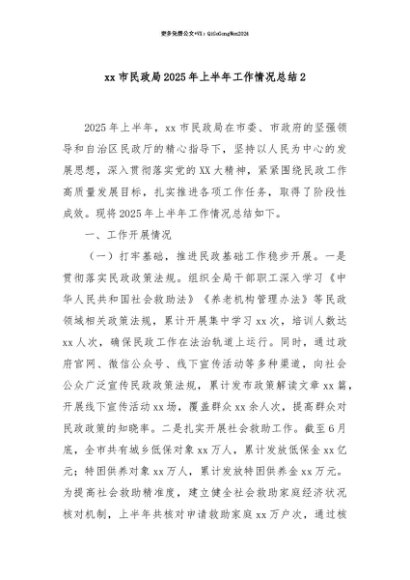 【七哥公文】2025年:【七哥公文】xx市民政局2025年上半年工作情况总结2+更多免费公文+VX:QiGeGongWen2024+更多免费公文+VX:QiGeGongWen2024