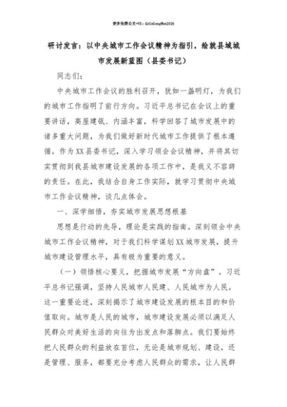 【七哥公文】2025年:【七哥公文】研讨发言:以中央城市工作会议精神为指引,绘就县域城市发展新蓝图(县委书记)+更多免费公文+VX:QiGeGongWen2024+更多免费公文+VX:QiGeGongWen2024