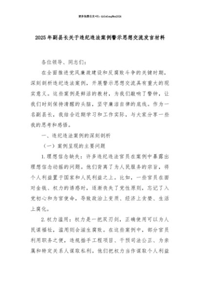 【七哥公文】2025年:【七哥公文】2025年副县长关于违纪违法案例警示思想交流发言材料+更多免费公文+VX:QiGeGongWen2024+更多免费公文+VX:QiGeGongWen2024