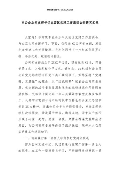 【七哥公文】2025年:【七哥公文】非公企业党支部书记在园区党建工作座谈会的情况汇报+更多免费公文+VX:QiGeGongWen2024+更多免费公文+VX:QiGeGongWen2024