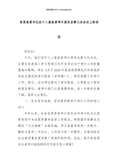 【七哥公文】2025年:【七哥公文】某某省委书记在十二届省委审计委员会第七次会议上的讲话+更多免费公文+VX:QiGeGongWen2024+更多免费公文+VX:QiGeGongWen2024