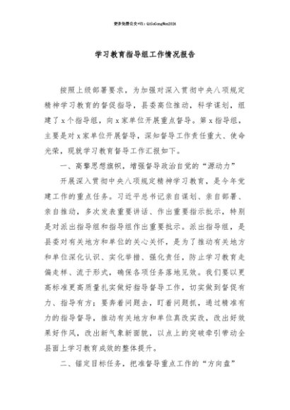 【七哥公文】2025年:【七哥公文】学习教育指导组工作情况报告+更多免费公文+VX:QiGeGongWen2024+更多免费公文+VX:QiGeGongWen2024