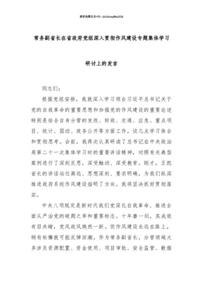 【七哥公文】2025年:【七哥公文】常务副省长在省政府党组深入贯彻作风建设专题集体学习研讨上的发言+更多免费公文+VX:QiGeGongWen2024+更多免费公文+VX:QiGeGongWen2024