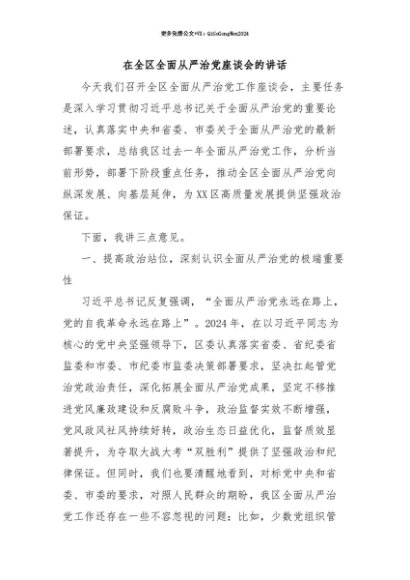 【七哥公文】2025年:【七哥公文】在全区全面从严治党座谈会的讲话+更多免费公文+VX:QiGeGongWen2024+更多免费公文+VX:QiGeGongWen2024