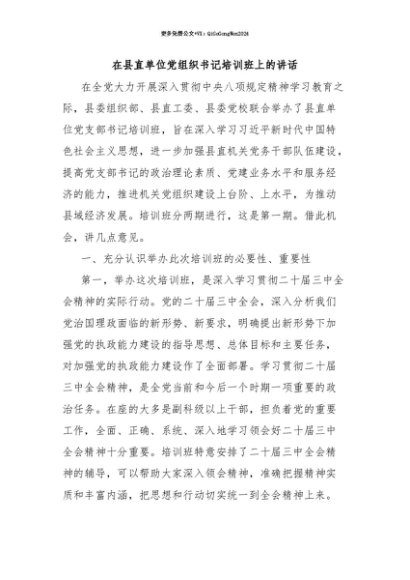 【七哥公文】2025年:【七哥公文】在县直单位党组织书记培训班上的讲话+更多免费公文+VX:QiGeGongWen2024+更多免费公文+VX:QiGeGongWen2024