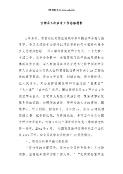 【七哥公文】2025年:【七哥公文】法学会5年多来工作总结材料+更多免费公文+VX:QiGeGongWen2024+更多免费公文+VX:QiGeGongWen2024