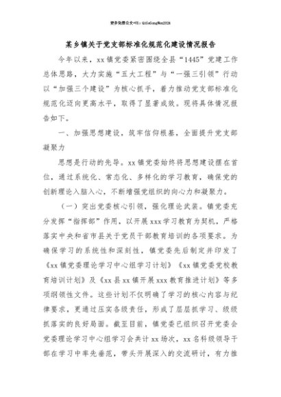【七哥公文】2025年:【七哥公文】某乡镇关于党支部标准化规范化建设情况报告+更多免费公文+VX:QiGeGongWen2024+更多免费公文+VX:QiGeGongWen2024