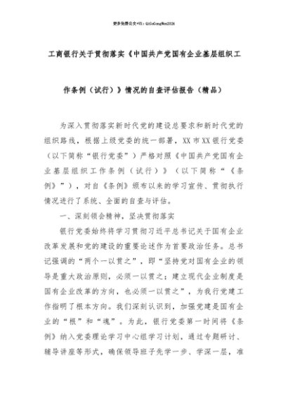 【七哥公文】2025年:【七哥公文】工商银行关于贯彻落实《中国共产党国有企业基层组织工作条例(试行)》情况的自查评估报告(精品)+更多免费公文+VX:QiGeGongWen2024+更多免费公文+VX:QiGeGongWen2024