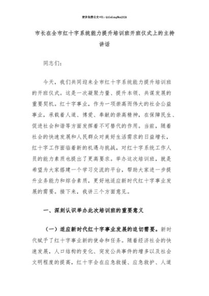 【七哥公文】2025年:【七哥公文】市长在全市红十字系统能力提升培训班开班仪式上的主持讲话+更多免费公文+VX:QiGeGongWen2024+更多免费公文+VX:QiGeGongWen2024