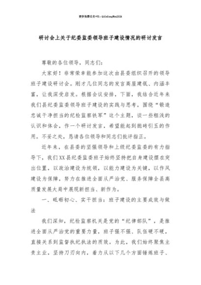 【七哥公文】2025年:【七哥公文】研讨会上关于纪委监委领导班子建设情况的研讨发言+更多免费公文+VX:QiGeGongWen2024+更多免费公文+VX:QiGeGongWen2024